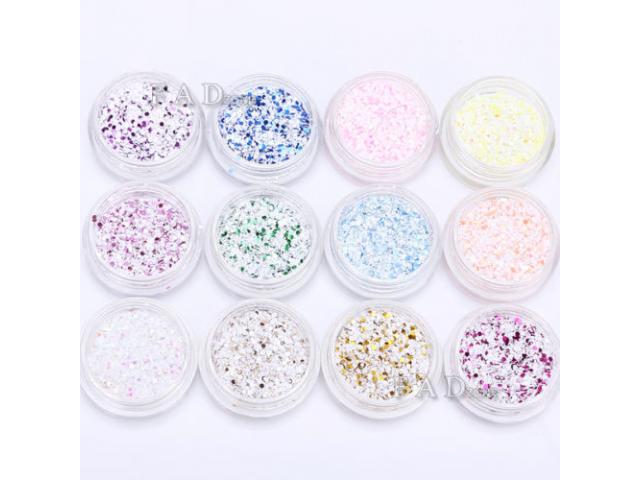 Top quality of 12 pots glitter nail art decoration tips in individual pot.